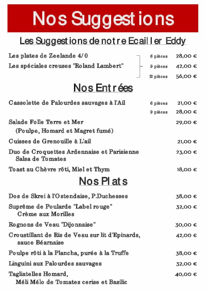 Les suggestionsBrasserieLes dessertsLes vins